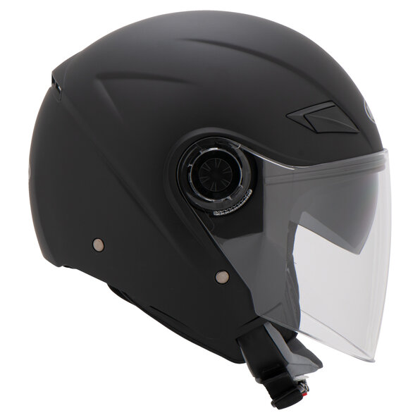 Sporty demi-jet helmet made of ABS. Optimal glare protection ensured by the integrated sun visor. Convenient side-mounted lever to open/close sun visor.
