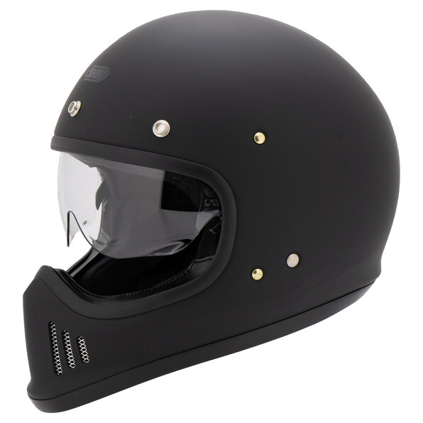 The new *Ex-Zero* motorcycle helmet from Shoei rides the crest of the retro wave that is sweeping over the motorbike scene But the concept behind this design classic is not really so "new" at all. Shoei developed the EX series way back in the 1980s. Today the shapes, colours and designs from that period are enjoying huge popularity amongst retro bikers, scramblers and cafe racers.