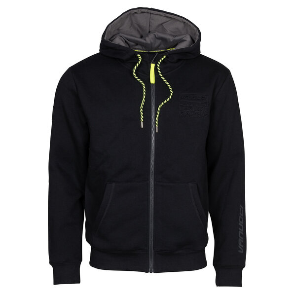 This is an amazing zip-hoodie from Vanucci. It's noble and casual at the same time, so that it works to everything at anytime. The brushed inside makes it cozy from the inside, so put it on and feel comfortable. This will be your new favorite.
