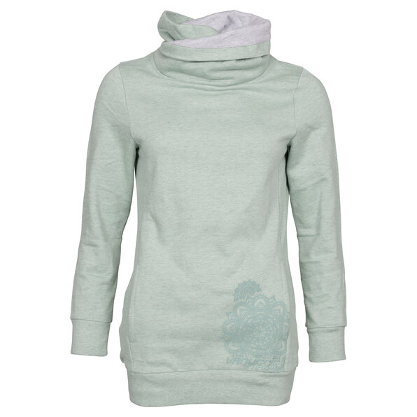 Almost everything about this long pullover in mint melange gives you a bit more: the extra long cut, extra casual shawl-type collar with light grey reverse side, the specially matching tone-on-tone printed logo, the extra small subtle label on the back. The Vanucci Tifoso ladies long pullover - a little extra just for you!