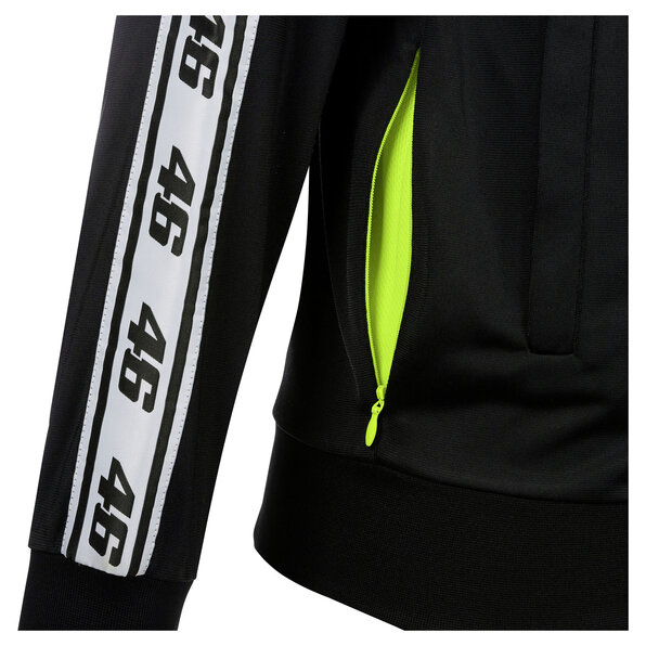 "No one is born a master" is an old saying that still rings true. For us motorcycle riders too, because a certain amount of fitness and sports training can certainly boost the fun factor in biking. With this VR46 Track training jacket, you can also look the part. And while you are at it, you might want to get the matching training trousers too (210450).