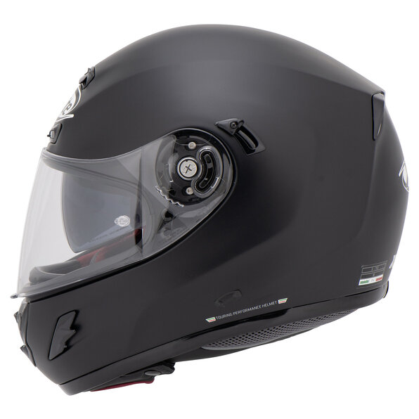 - Ventilation: Touring Ventilation System, adjustable forehead and top vents with integral ventilation ducts and air flow rear extraction. 2-way chin vent and adjustable side ventilation